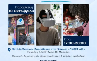 Η ΕΠΑΨΥ σας προσκαλεί να συμμετάσχετε σε μια μοναδική, διαδραστική εκδήλωση αφιερωμένη στην Παγκόσμια Ημέρα Ψυχικής Υγείας, η οποία έχει στόχο την ενημέρωση, την ευαισθητοποίηση και την αποδόμηση των στερεοτύπων που περιβάλλουν την ψυχική υγεία. Η εκδήλωση έχει ελεύθερη […]